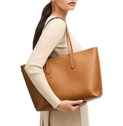 Many people opt for leather because it is longer lasting while vegan leather made out of plastic can degrade and flake more quickly. If you are vegan, you can opt for nylon or coated canvas totes for better durability.